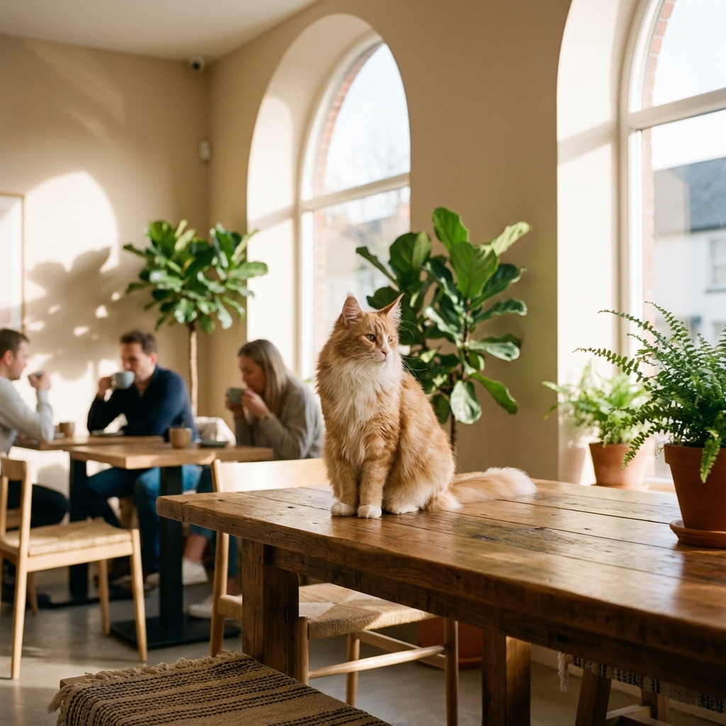 Výběrová káva, sladké zákusky a společnost kočičích kamarádů.